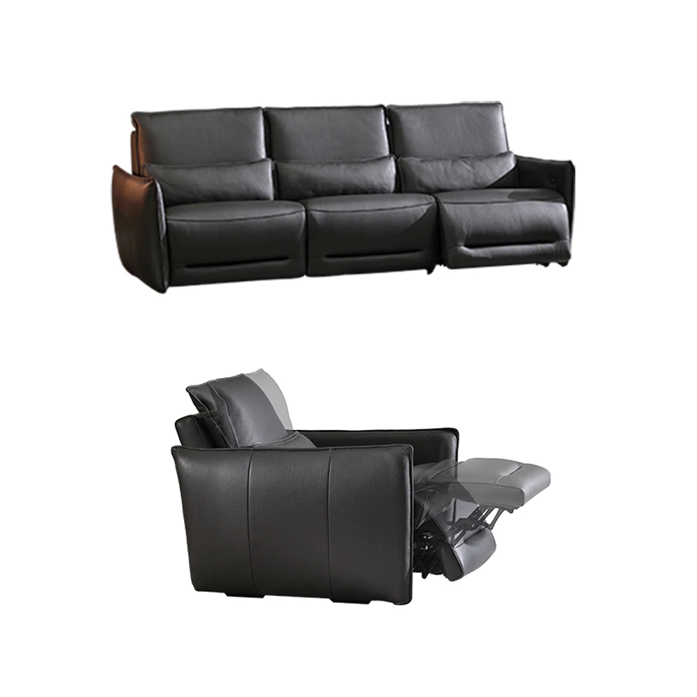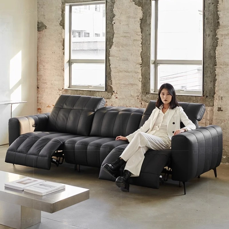 MINGDIBAO Manueller/elektrischer Liegestuhl Italinan-Sofa aus echtem Leder, einziehbarer Theater-Liegestuhl, 4-Sitzer-Wohnzimmer