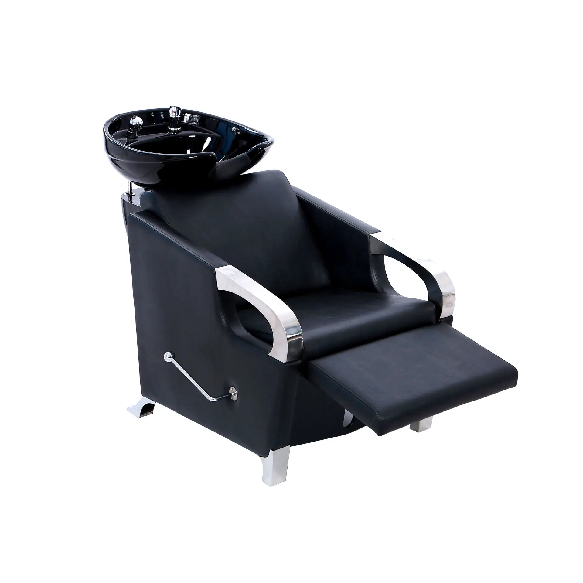Salonmöbel im modernen Stil, schwarzes Leder, Shampoo-Bett, Haarwaschstuhl mit Beinhalter, verstellbar
