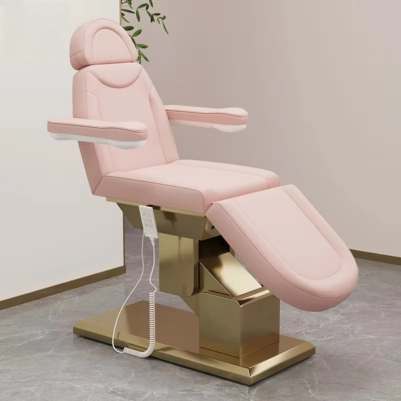 Elektrisches 3-Motor-verstellbares Schönheitsmassagebett aus goldenem Metall, rosa Salonmöbel