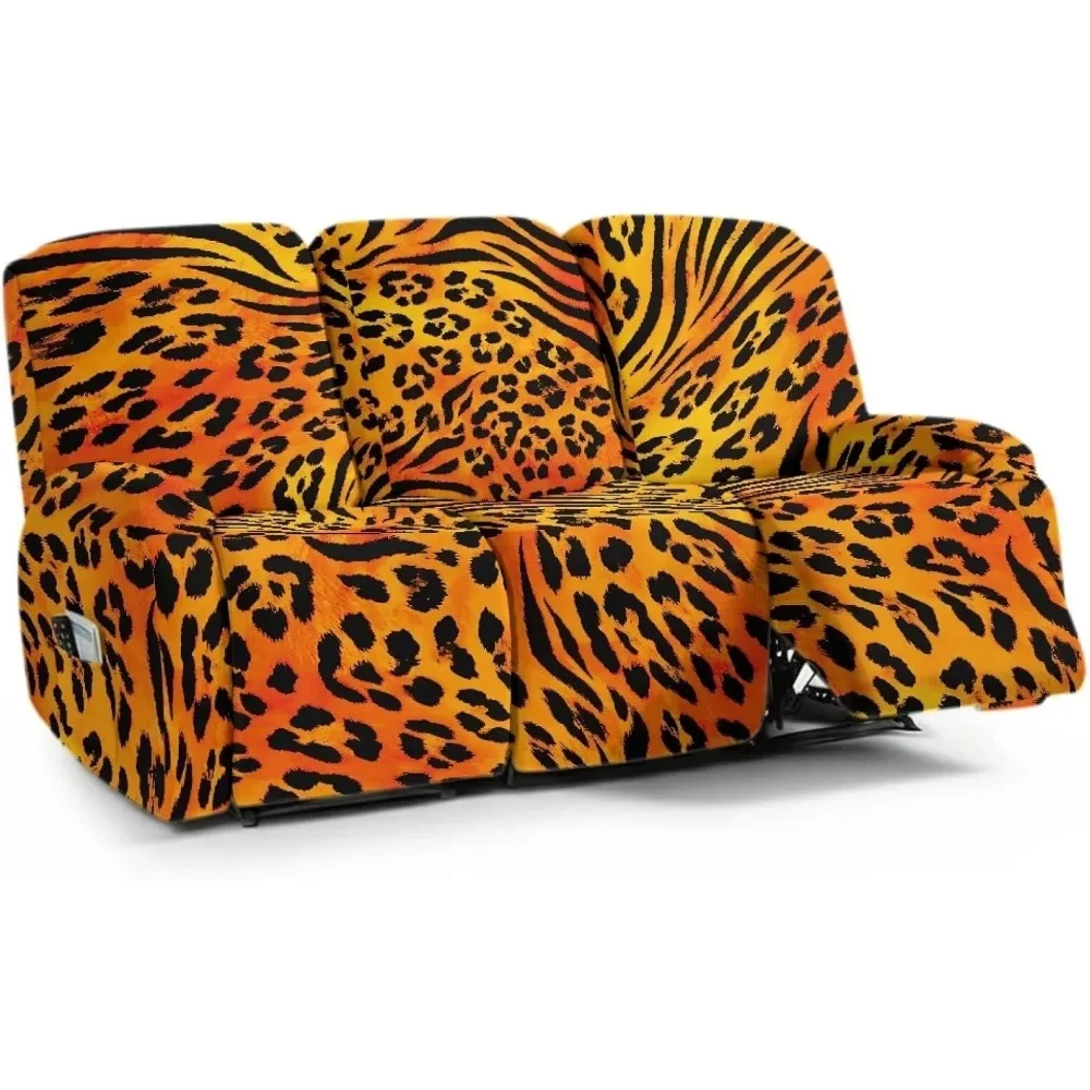 Sesselbezüge, 8-teilig, dehnbar und für Liegesofas geeignet, maschinenwaschbar, für 3-teilige Liegesofas, Leoparden-Tiger-Print