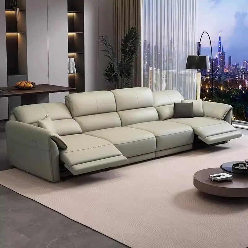 Modernes elektrisch verstellbares Sofa aus echtem Leder – Sofagarnitur mit verstellbaren Fußstützen, USB, für Wohnzimmer oder Heimkino