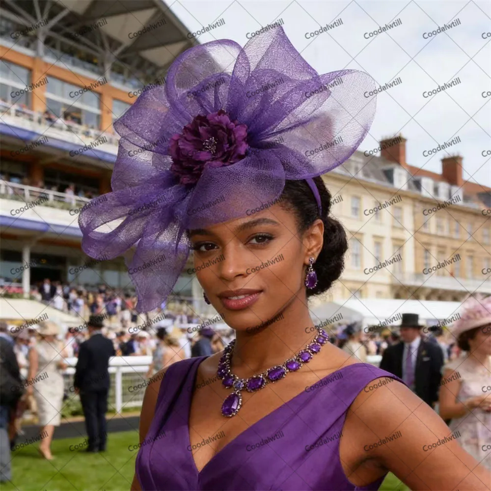 Lila Mode Blume Fascinator Hut Haar Clip Für Frauen Hochzeit Party Kopfbedeckung Rennen Derby Damen Kopfschmuck Braut Party Abendessen