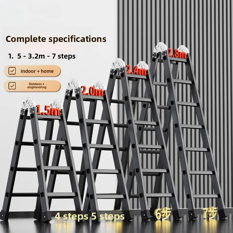 Klappbare Gehrungsleiter für den Innenbereich, kleine Haushaltsleiter, Treppe aus verdickter Aluminiumlegierung, multifunktionaler Hocker mit zwei oder drei Stufen