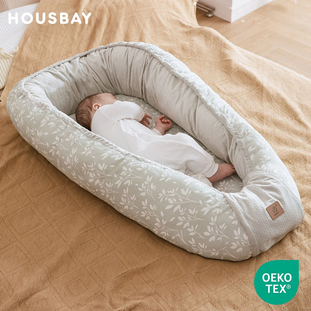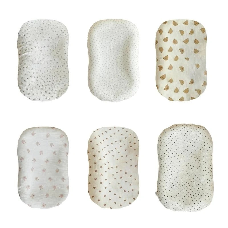 Baby-Nest für Jungen und Mädchen, tragbares Kissen für draußen und drinnen, Beistellbett, niedliches Cartoon-Muster, bedruckt, 100 % Baumwolle, weich, geschirmt