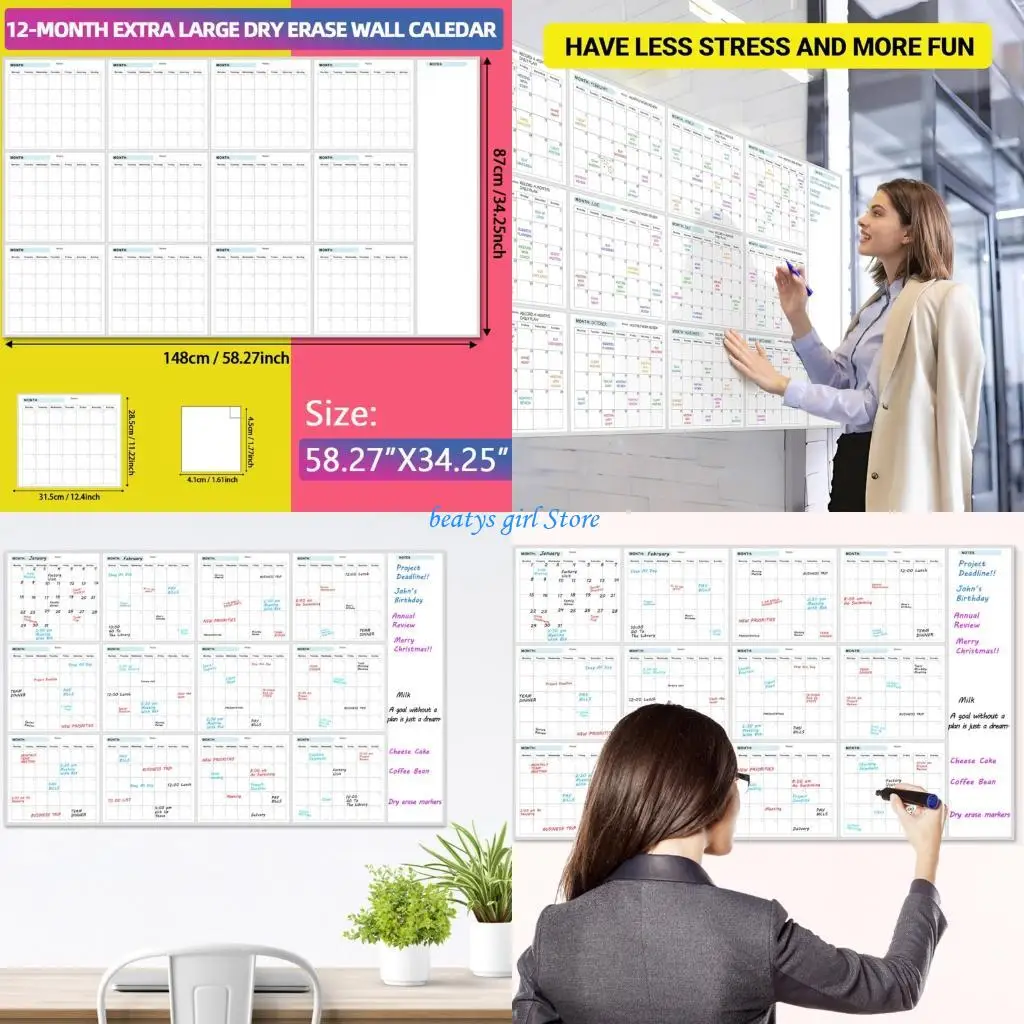 Büro-Wandkalender zum Aufhängen, Monatsplaner, Papier, Jahr des Pferdes, chinesischer Kalender, Planung für Büro, Schule, Klassenzimmer