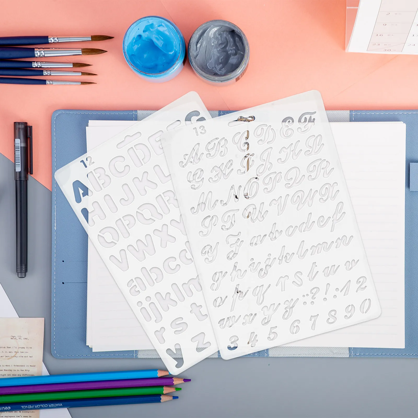 20 Blatt Alphabet-Kunstschablonen aus PET für Langlebigen Einsatz bei Zeichenschablonen und Dekorativer Malerei