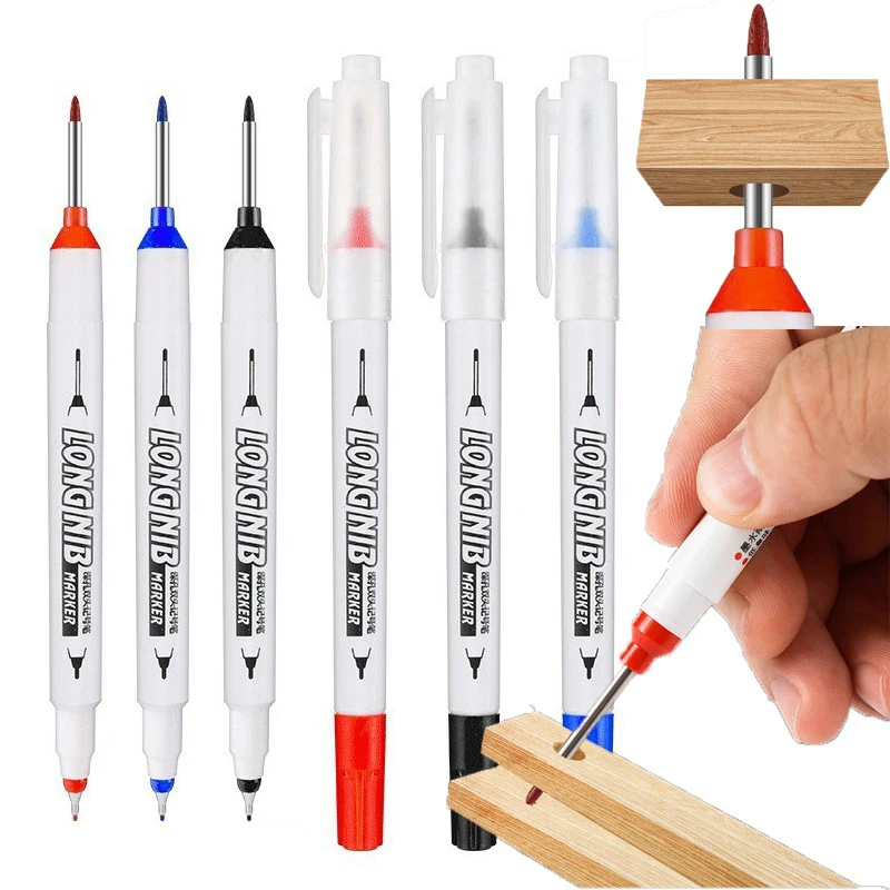 Lot 45 mm wasserdichter Markierungsstift mit langer Kopfspitze, Tiefloch-Marker, Fliesen-Schreiner-Stift, vielseitig einsetzbar für die Holzbearbeitung, schwarze/weiße/rote Tinte
