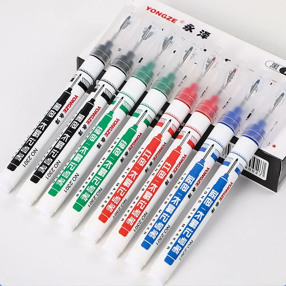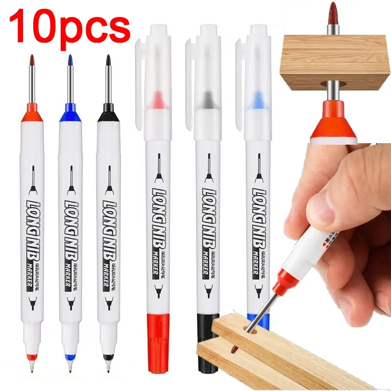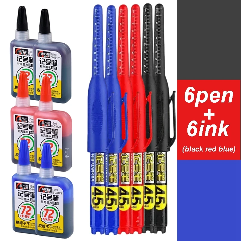 Lot 45 mm wasserdichter Markierungsstift mit langer Kopfspitze, Tiefloch-Marker, Fliesen-Schreiner-Stift, vielseitig einsetzbar für die Holzbearbeitung, schwarze/blaue/rote Tinte