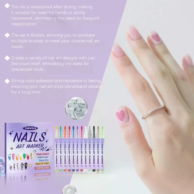 12 Stücke Marker Zeichnung Acryl Farbe Stifte Nail art Graffiti Stift Set Wasserdicht Nagel Malerei Maniküre Extra Fein 0,5mm