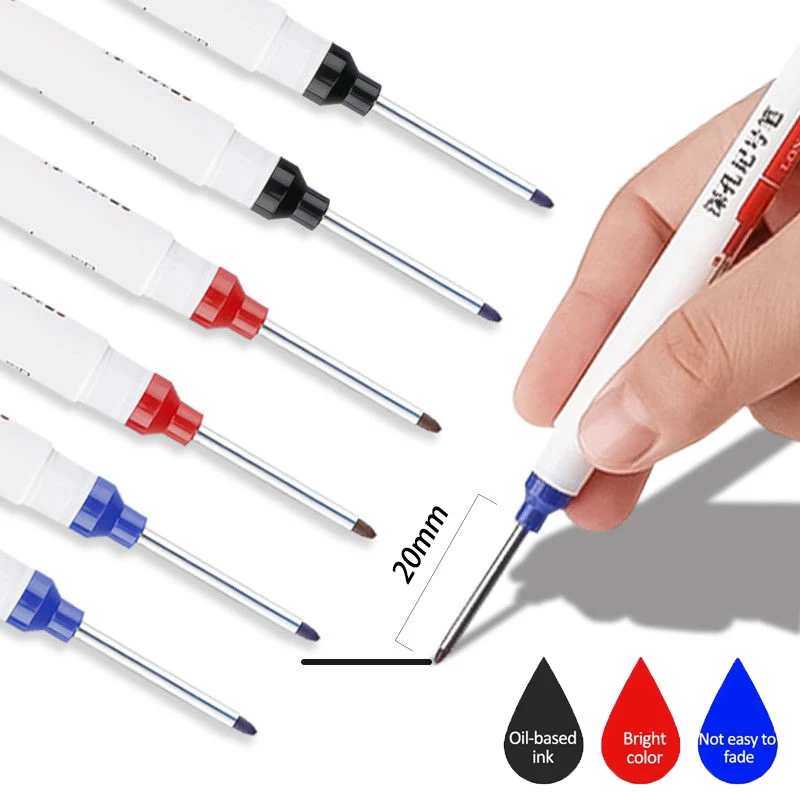 8 Stück 45 mm wasserdichte Spitze mit langer Kopfspitze, Tiefloch-Marker, Fliesen-Tischler-Stift, Mehrzweck für die Holzbearbeitung, schwarze/blaue/rote Tinte