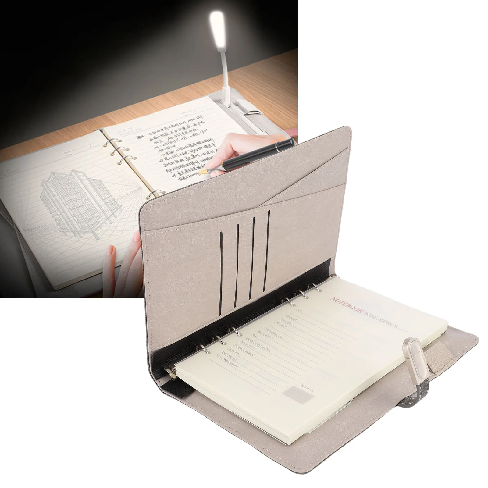 Professionelles Schulnotizbuch mit Powerbank, kabelloses Lade-Notizbuch, personalisiertes Reisetagebuch mit leicht nachfüllbarem Licht
