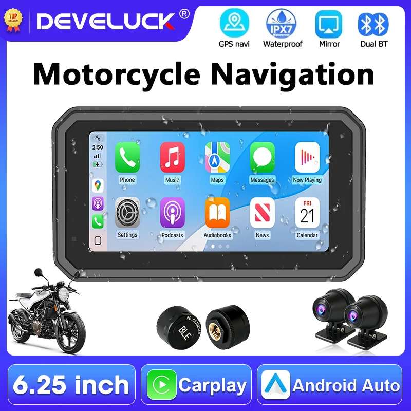 Jansite 6,25" Carplay Bildschirm für Motorrad Android Auto GPS Navigation Motorrad Helm Bluetooth hinzufügen Magnetische Halterung TPMS Sensor