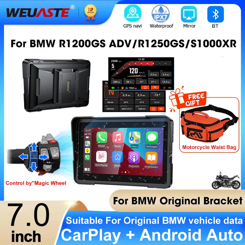 7-Zoll Wireless CarPlay speziell für BMW R1200GS R1250GS R1300GS Motorrad Android Auto Tragbares digitales Armaturenbrett-Navigationsdisplay