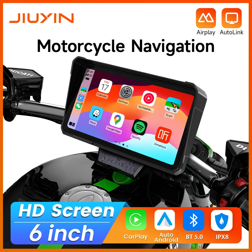 6-Zoll-Motorrad-GPS-Navigationsrekorder, kabelloser CarPlay Android Auto Multimedia-Player, IPX8 wasserdichter Bildschirm, Bluetooth, neu