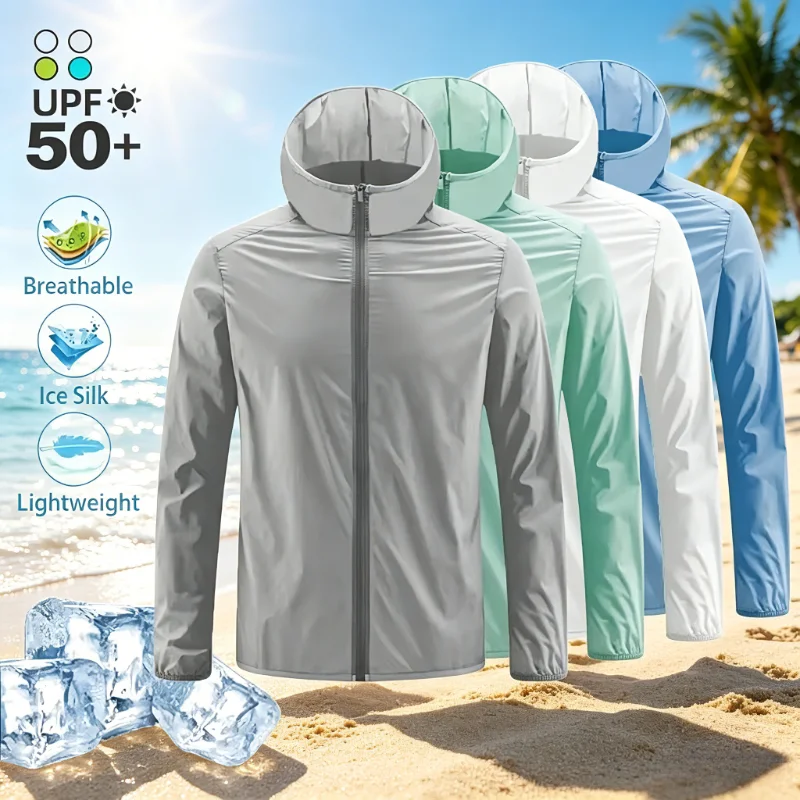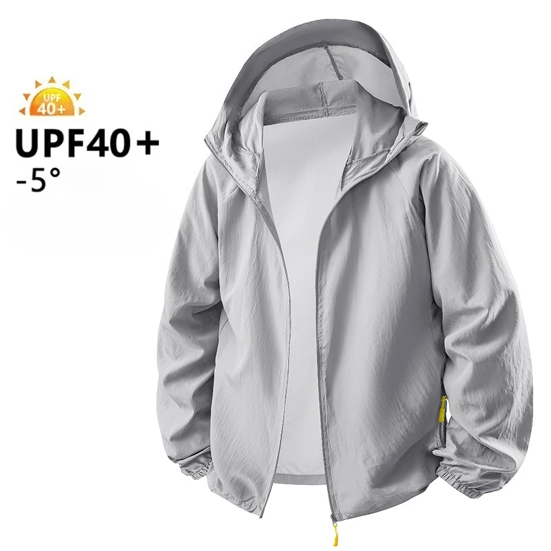 Sommer-Sonnenschutzkleidung für Herren, leichte, atmungsaktive, schnell trocknende Jacke aus Eisseide mit Kapuze, Anti-Ultraviolett-Hautjacke für den Außenbereich