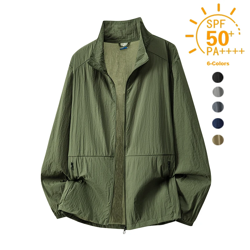 Sommer-Herrenjacken aus Eisseide Sonnenschutzkleidung Leichte Atmungsaktive Outdoor Anti-UV Windjacke