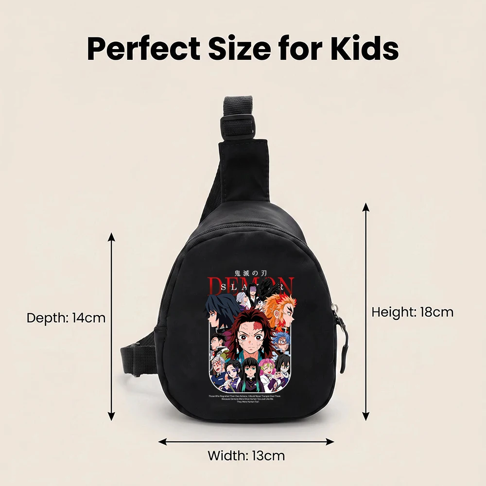 Demon Slayer Anime Kinder-Brusttasche, Mini-Umhängerucksack für Jungen und Mädchen, lässig, für den Alltag, Schule