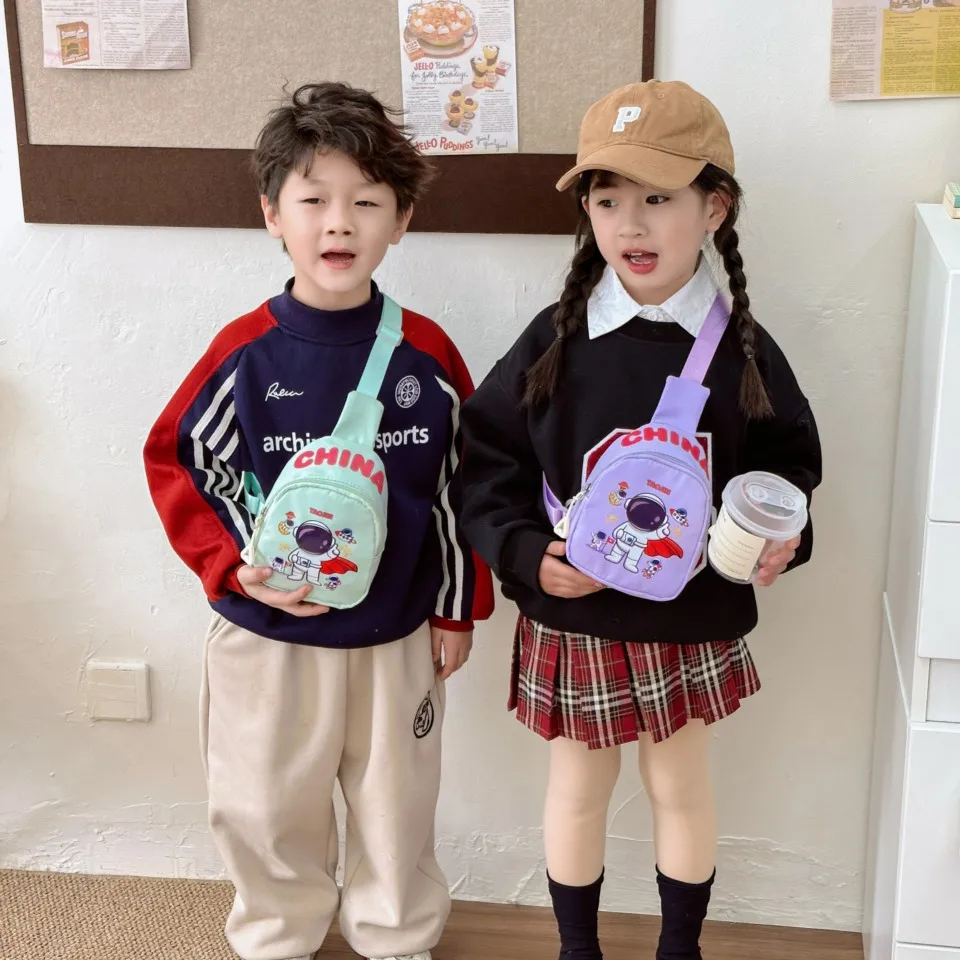 Mini-Brusttasche mit Cartoon-Astronauten-Aufdruck, verstellbare Schultergurte für Kinder