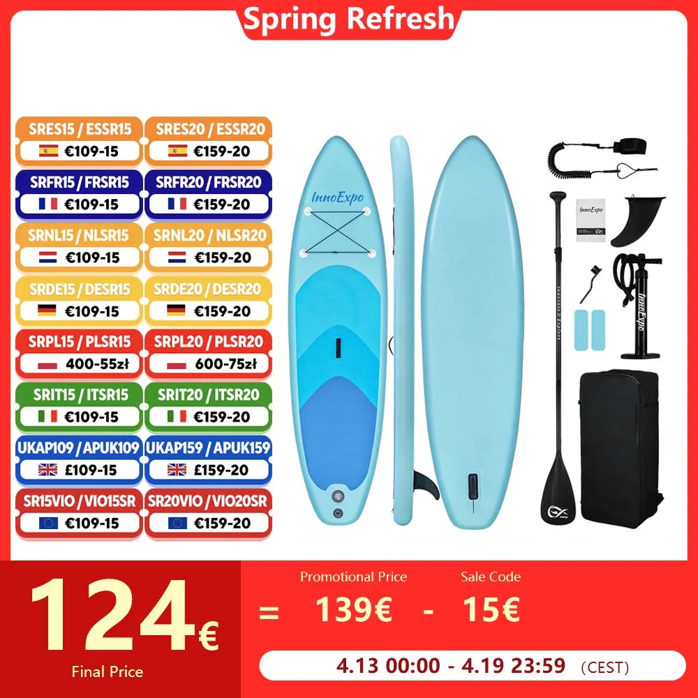 InnoExpo Stand Up Paddle Board Aufblasbares Paddelbrett Surf SUP Board Rutschfestes Wassersport-Paddelbrett mit Zubehör