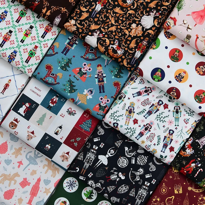 Weihnachts-Baumwollstoff, reine Baumwolle, handgefertigt, DIY, Feiertag, Trojaner, Weihnachtsbaum, Nussknacker, halber Meter