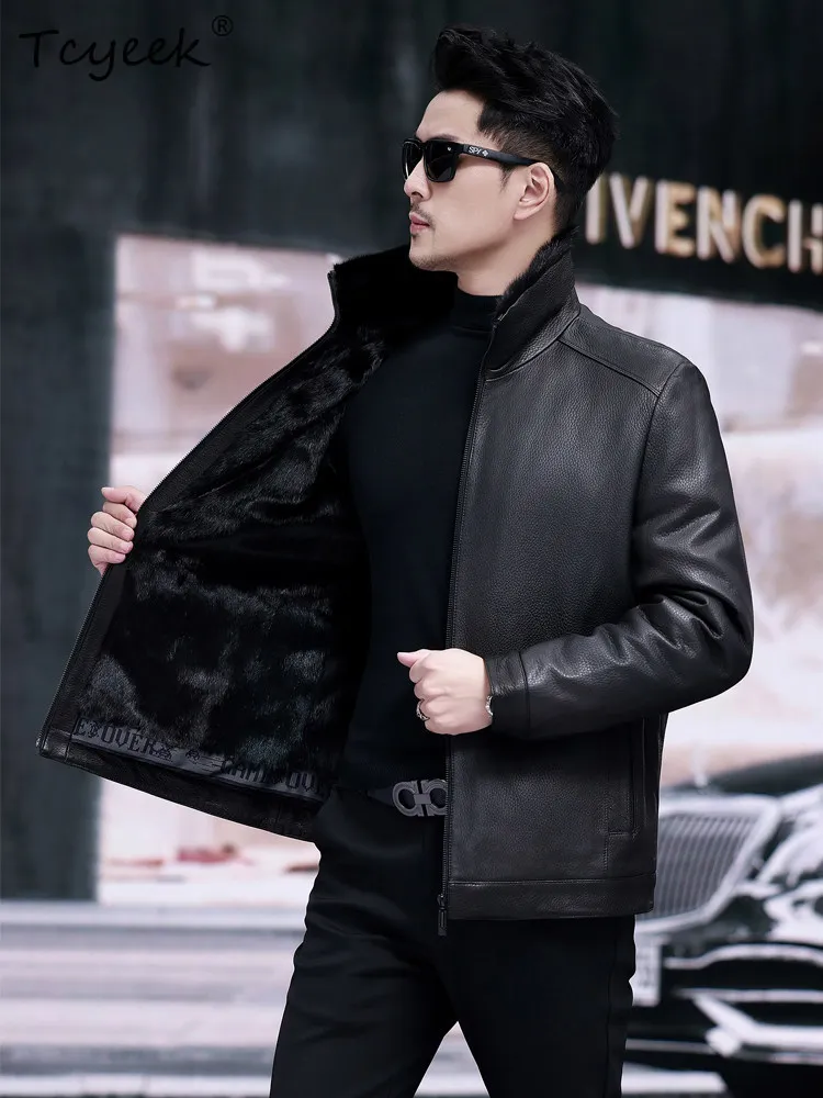 Tcyeek Oberschicht Rindsleder Echtes Leder Jacke Männer Winter Kleidung Business Casual Nerz Pelzmantel Herren Mäntel Chic Mohamed Муж Turismo