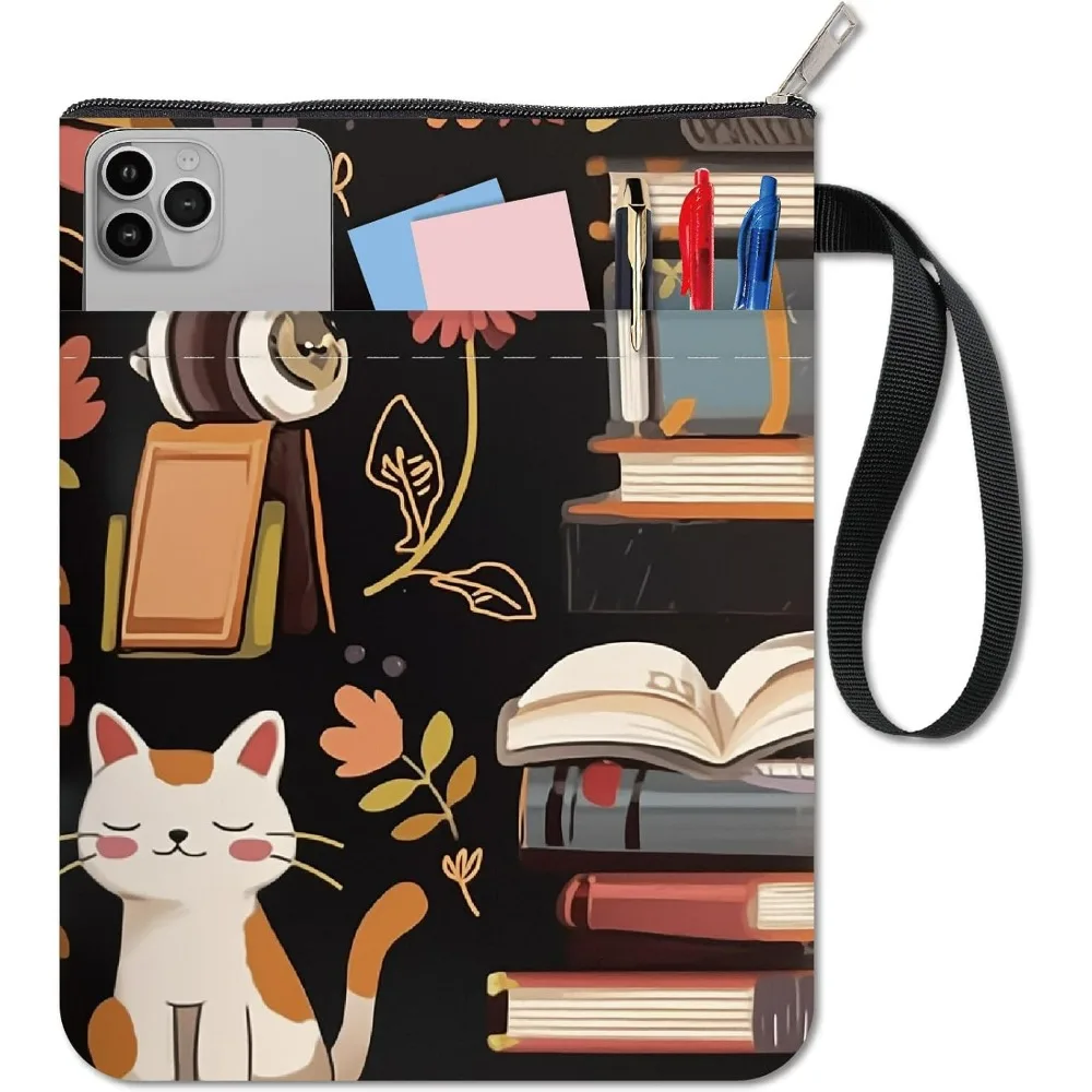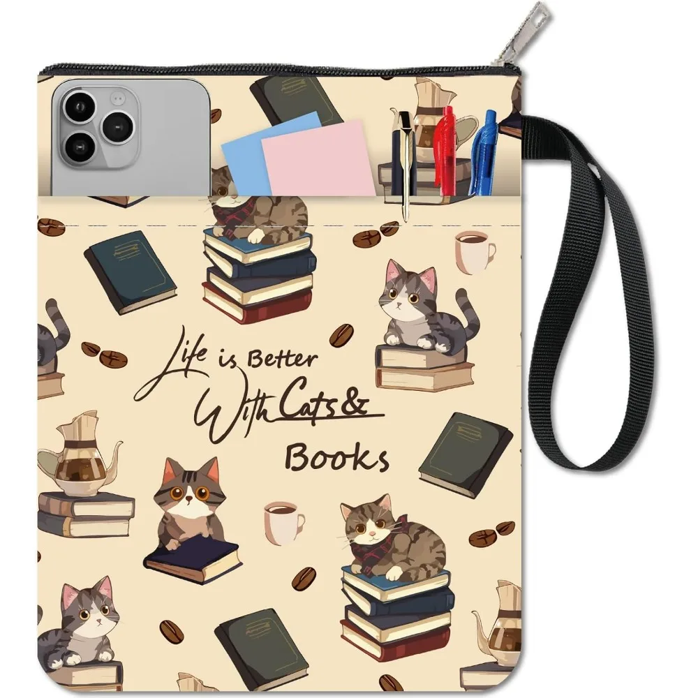 Katzen-Buchhülle mit Reißverschluss, wasserdichte Canvas-Tasche für Bücherliebhaber, Tagebuch, Lehrbücher, Tasche, Geschenk, 27,9 x 20,3 cm