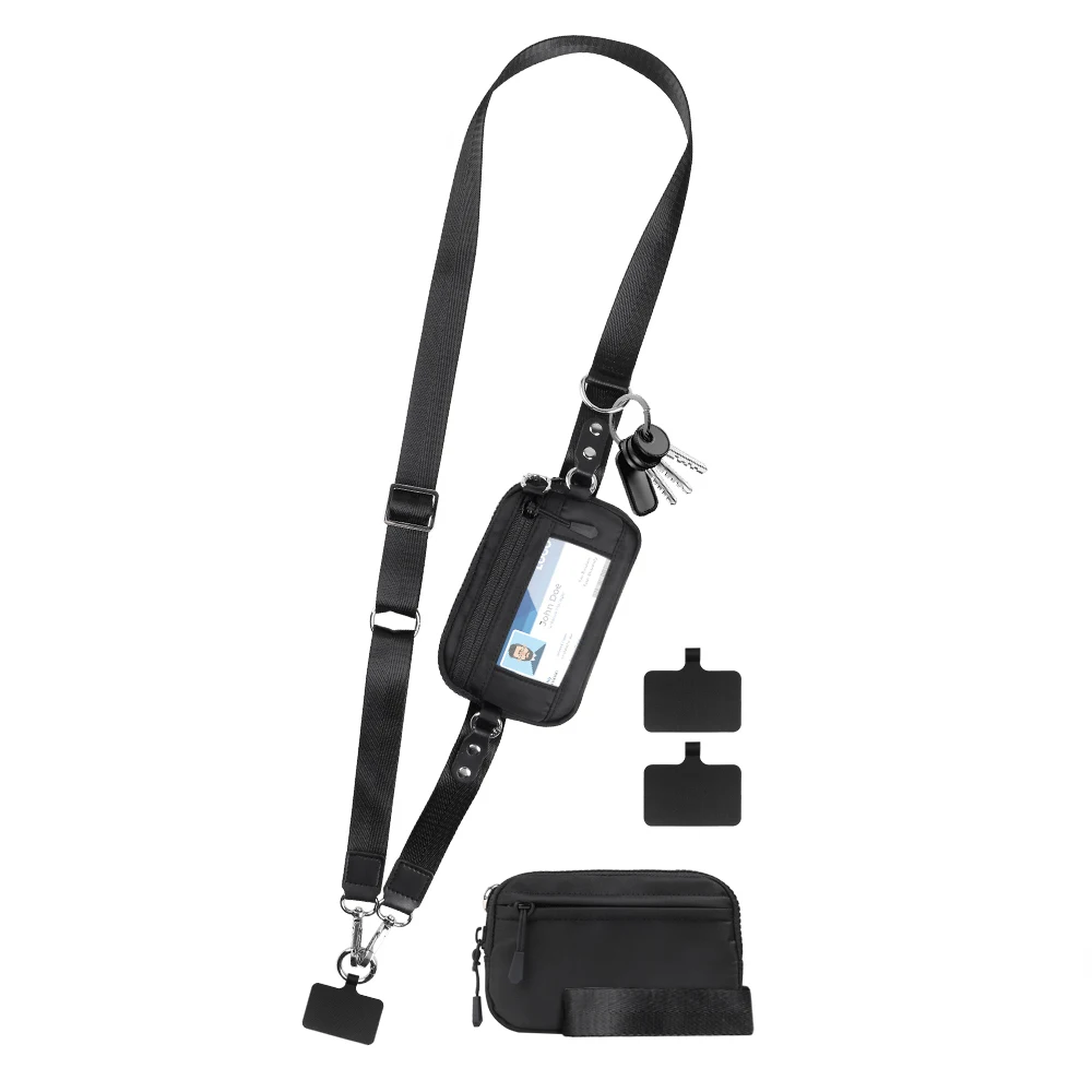 Clip and Go Gurt für Handy mit Geldbörse, Crossbody Handy Lanyard, Verstellbarer und Abnehmbarer RFID Handgelenkgeldbörse mit ID-Fenster