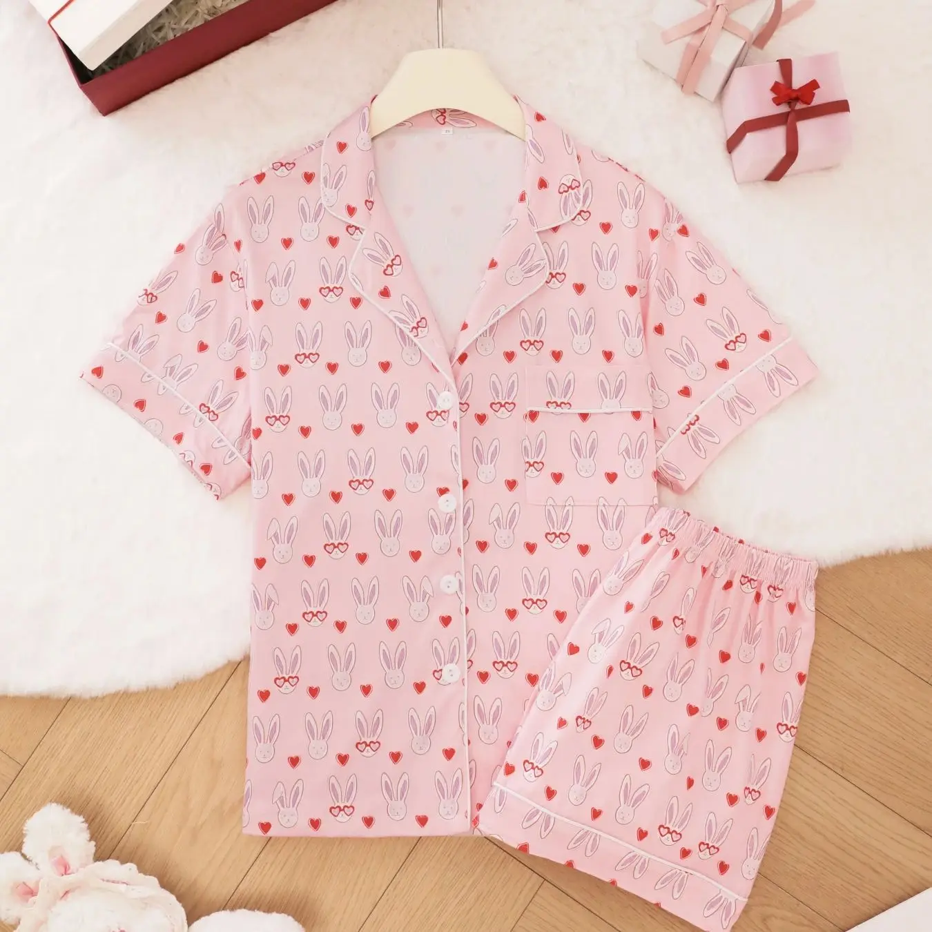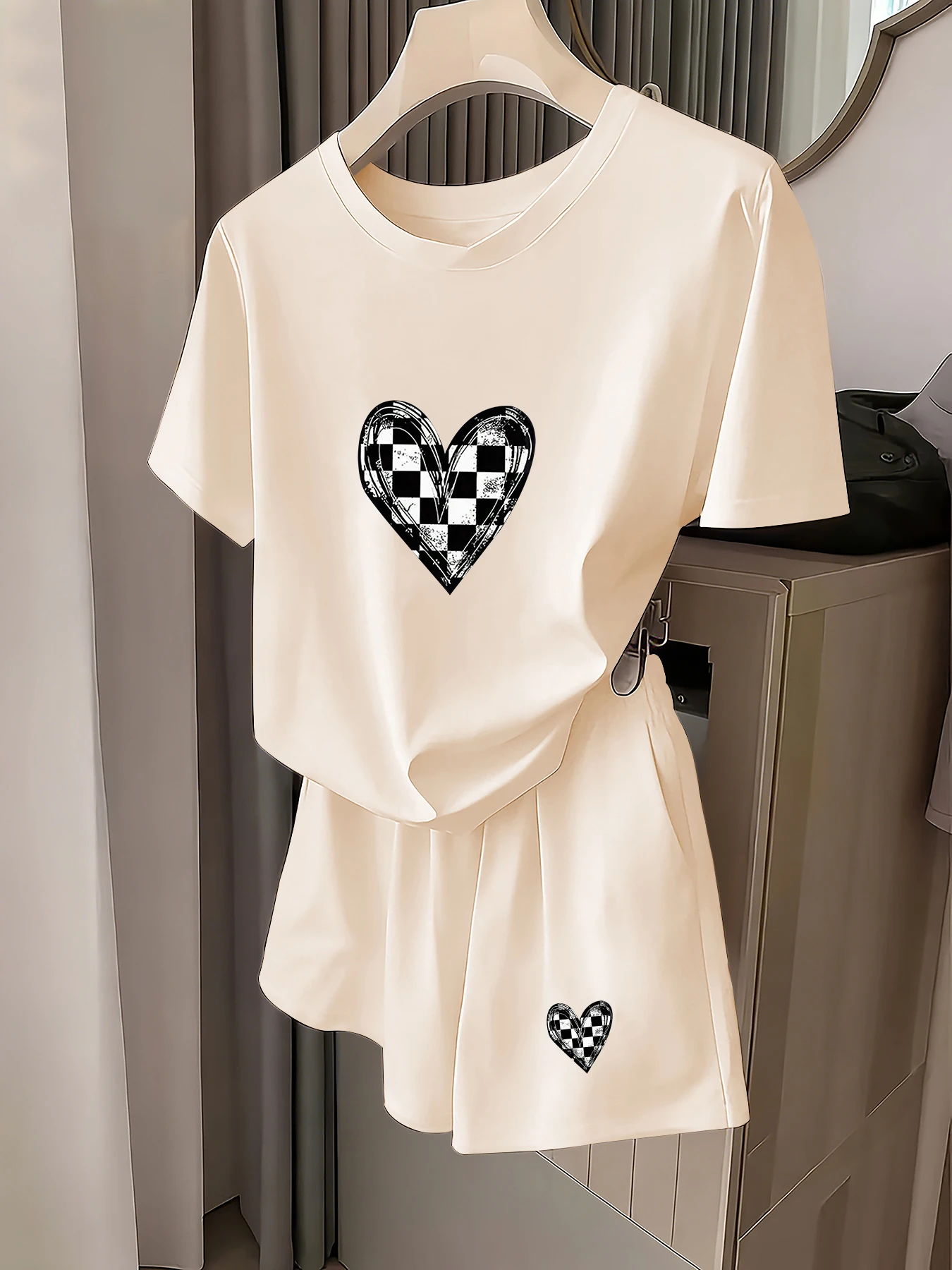 Damen-Freizeitoutfit, ein Trendiges Must-Have, Vielseitig für den Sommer, Kariertes Herz-Muster-Set, Elastischer Bund mit Kordelzug, Lockerer Drapierter Stil zum Ausgehen und Einkaufen, Damenkleidung