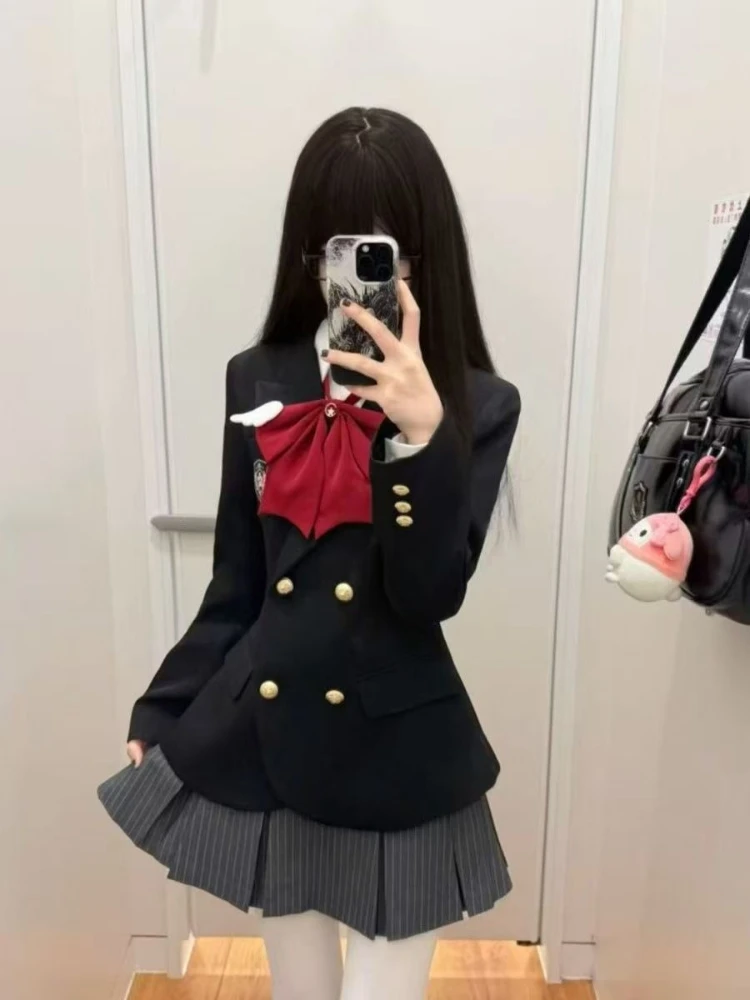 Gothic Y2K Slim-Fit Spitzen-2-Teiler für Damen: Schicker, eleganter Cardigan mit ausgestellten Ärmeln und modischer Spitzen-Schleifen-Top mit elastischem Taillenrock – Neu