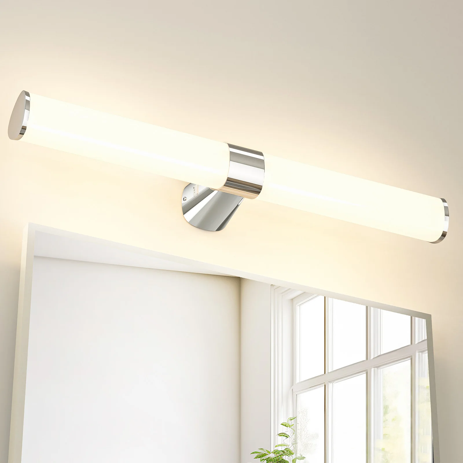 LED Wandleuchte Innen für über Spiegel Bad, 15W 1500Lm Badezimmer Lampe Wand, 60CM Breit IP44 Wasserdicht Spiegellampe, Silber Chrom, Nicht Dimmbar, 3 Lichtfarben Modi, Kein Schalter