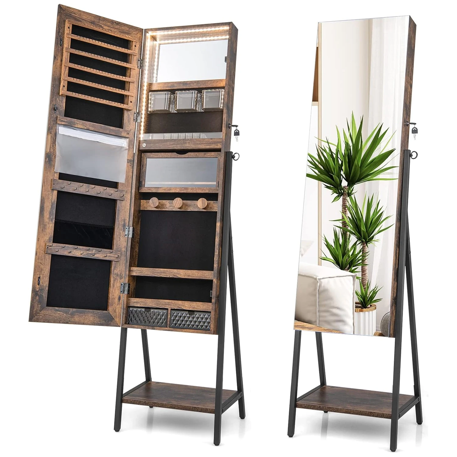 Schmuckschrank mit Spiegel, Schmuckspiegelschrank mit 3-Farben-LED-Beleuchtung, abschließbar, zusätzliches Regal