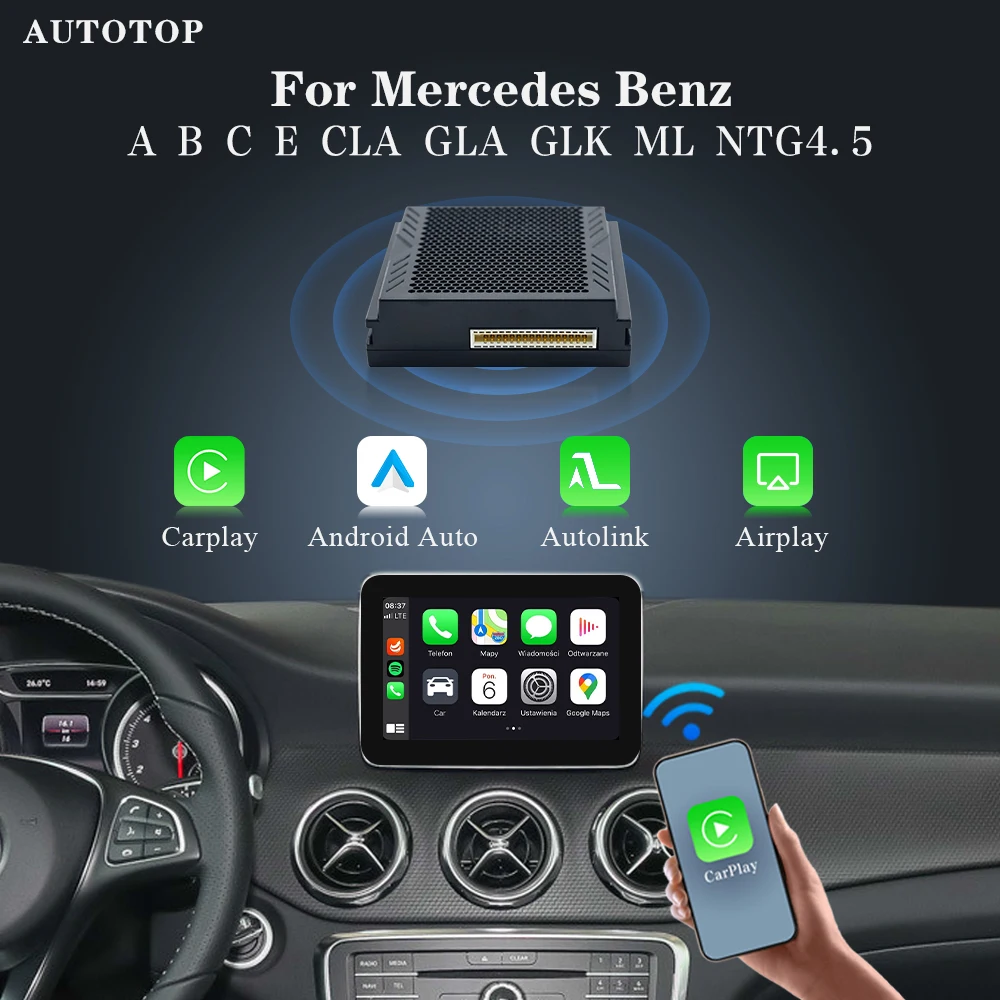 AUTOTOP Wireless Apple CarPlay Android Auto Nachrüstbox für Mercedes Benz A B C E CLA GLA GLK ML NTG4.5 Becker