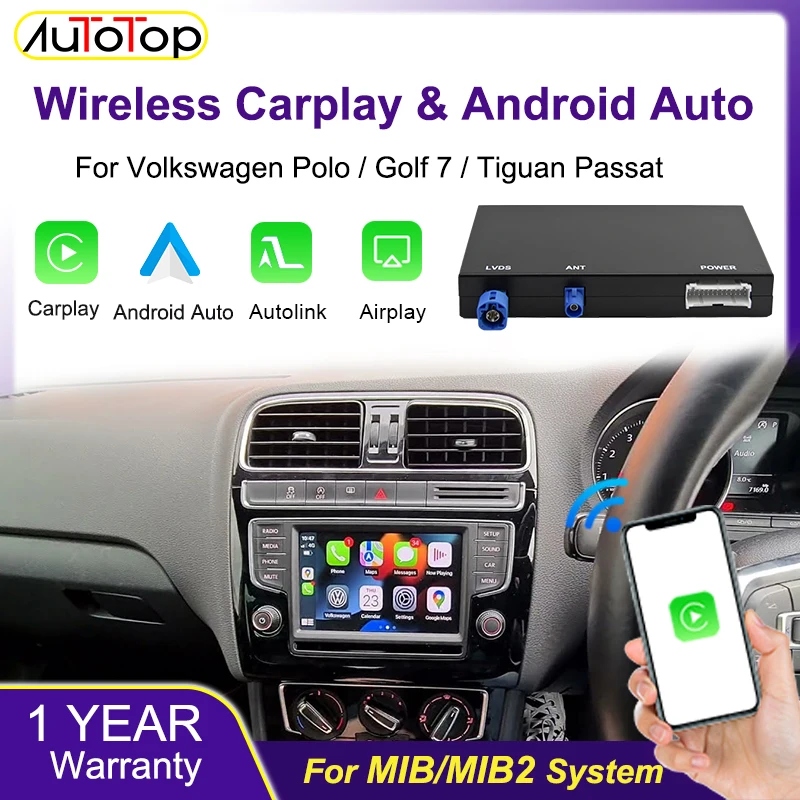 AUTOTOP Wireless Carplay Android Auto Nachrüstsätze für VW Skoda Octavia Polo Golf 7 Passat Scirocco T-Cross Tiguan MIB MIB2