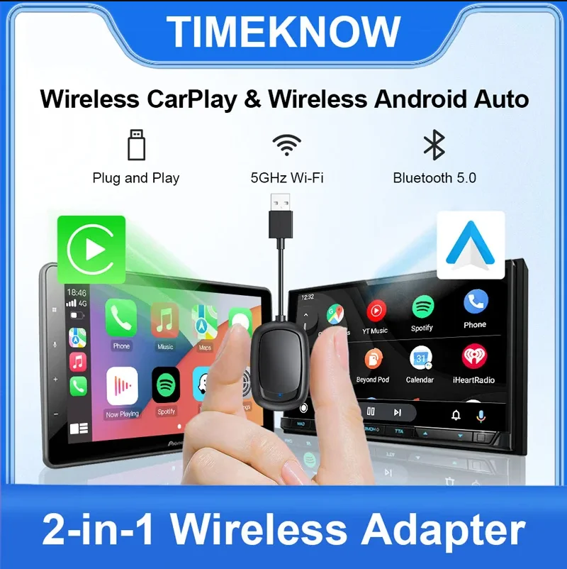 Neuer kabelgebundener zu kabelloser Carplay Android 2-in-1-Automatikadapter, Auto-Gadget, Smart Box, Plug-and-Play, 5 GHz, schnelle Verbindung