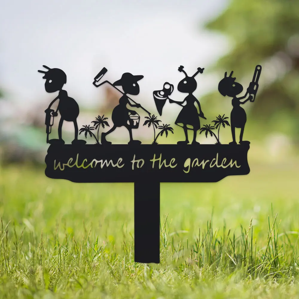 1 Stück Metall-Ameisen-Silhouetten-Gartenstecker im rustikalen Stil | Metall | Keine Stromversorgung erforderlich | Heim- und Außendekoration | Abschlussfeier-Saison