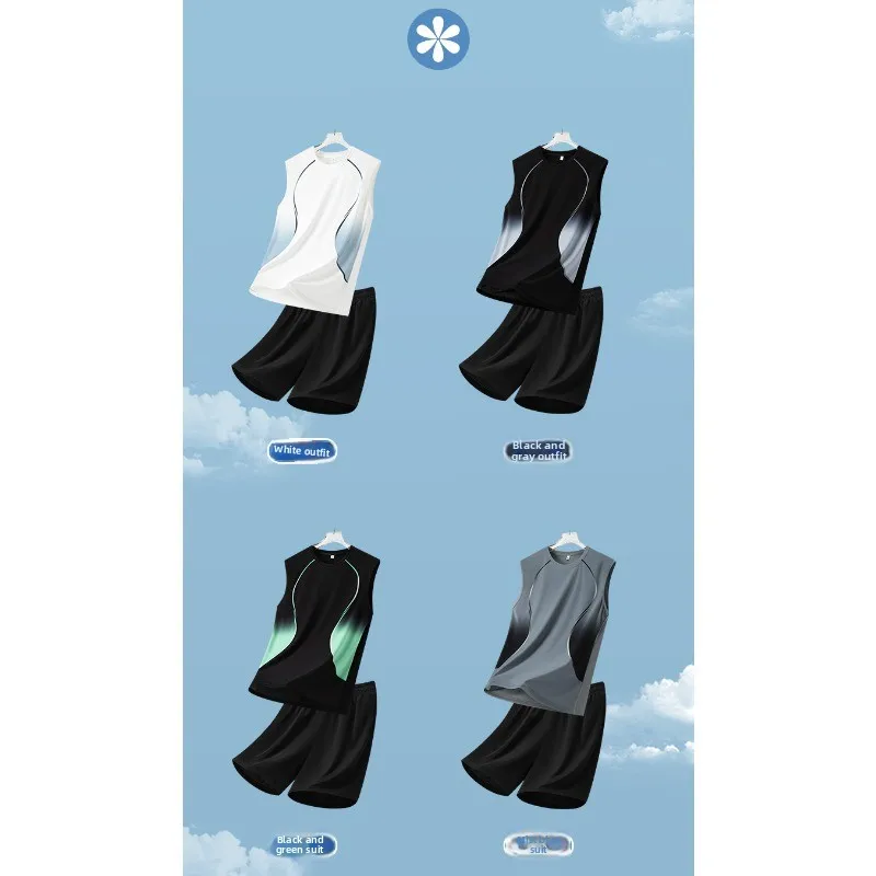 Ärmellose Weste für Herren, Fünf-Punkt-Shorts, 2-teiliges Set für den Außenbereich, Outdoor-Sport, winddicht und atmungsaktiv, schnell trocknend, Sportbekleidungsset