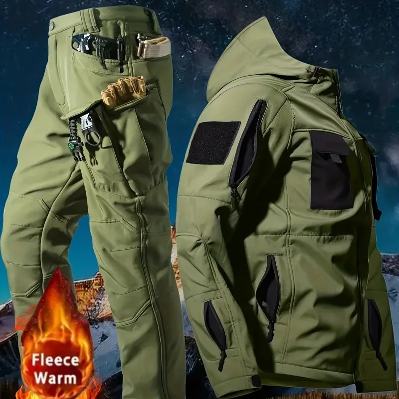 Baasploa Neue Herrenjacke für Outdoor-Klettern und Trekking, wasserdichte 3-in-1-Jacke mit Kapuze, lässige Jacke mit Fleece-Innenfutter, winddichte Mäntel