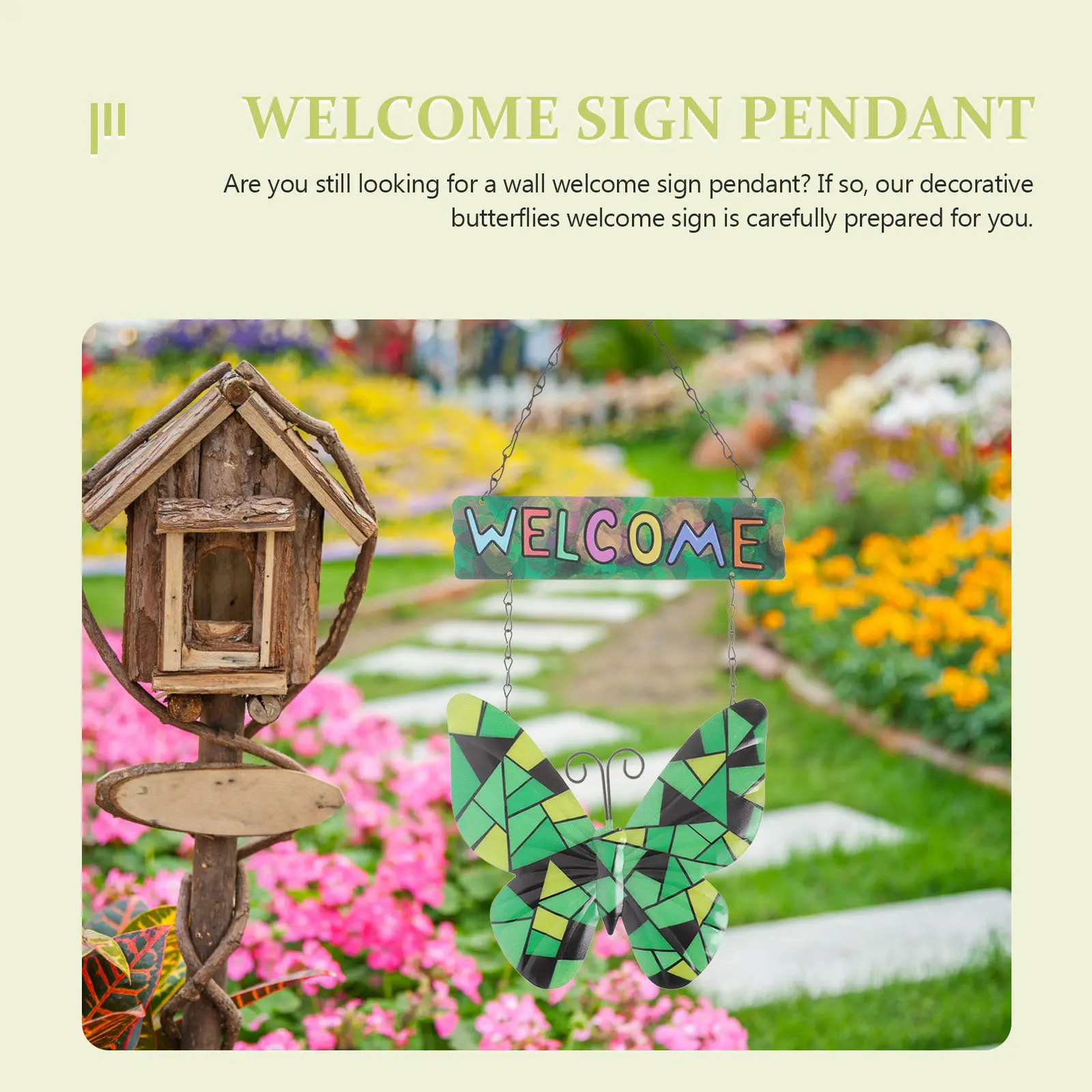 Eisenkunst-Schmetterlings-Willkommensschild, dekorativer Wandanhänger für Garten, Außenbereich, Hauseingang, neuartiges Design, passend für Bauernhaus, Strand, Büro