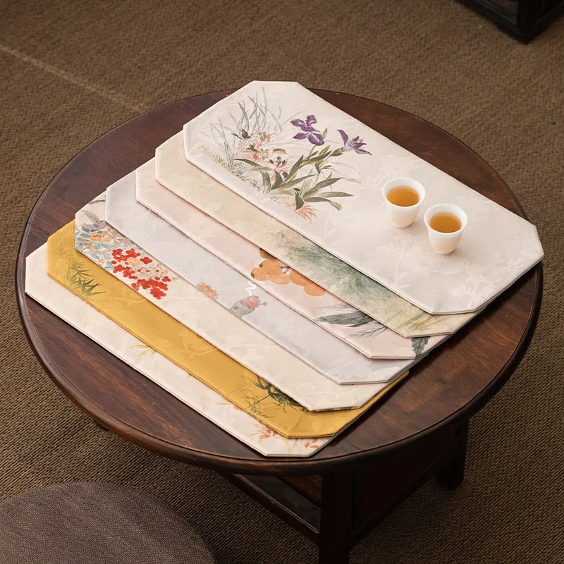 Nationalen Stil Brokat Schwimmende Licht Gold Tee Tisch Matten Alte Getränke Untersetzer Abendessen Tischdecke Matte Drink Ausrüstung Geschenk