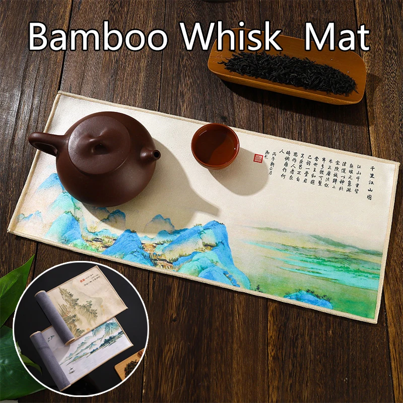 1pc Retro-Stil alte Malerei Tee matte Matcha Grüntee Pulver Schneebesen Matte japanische Zeremonie Bambus Chasen Geschirr tuch Tee geschirr