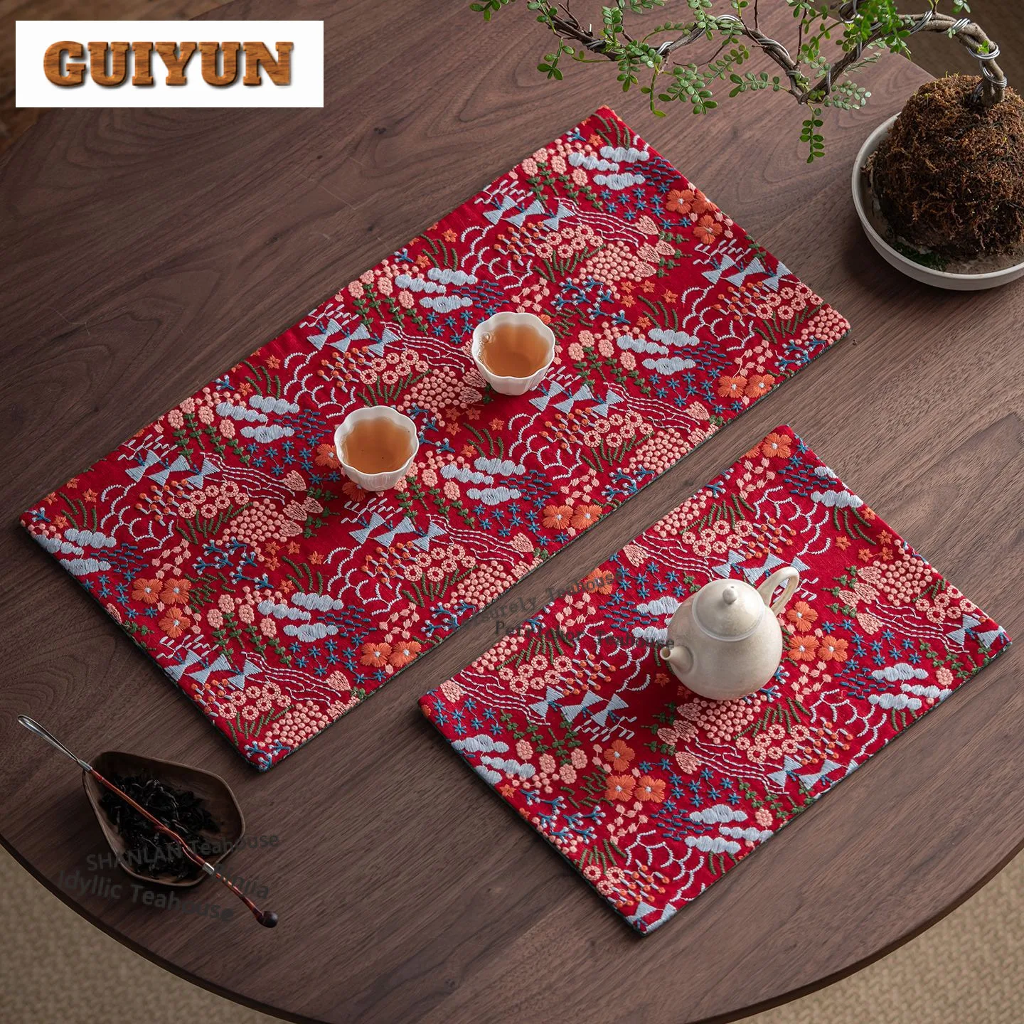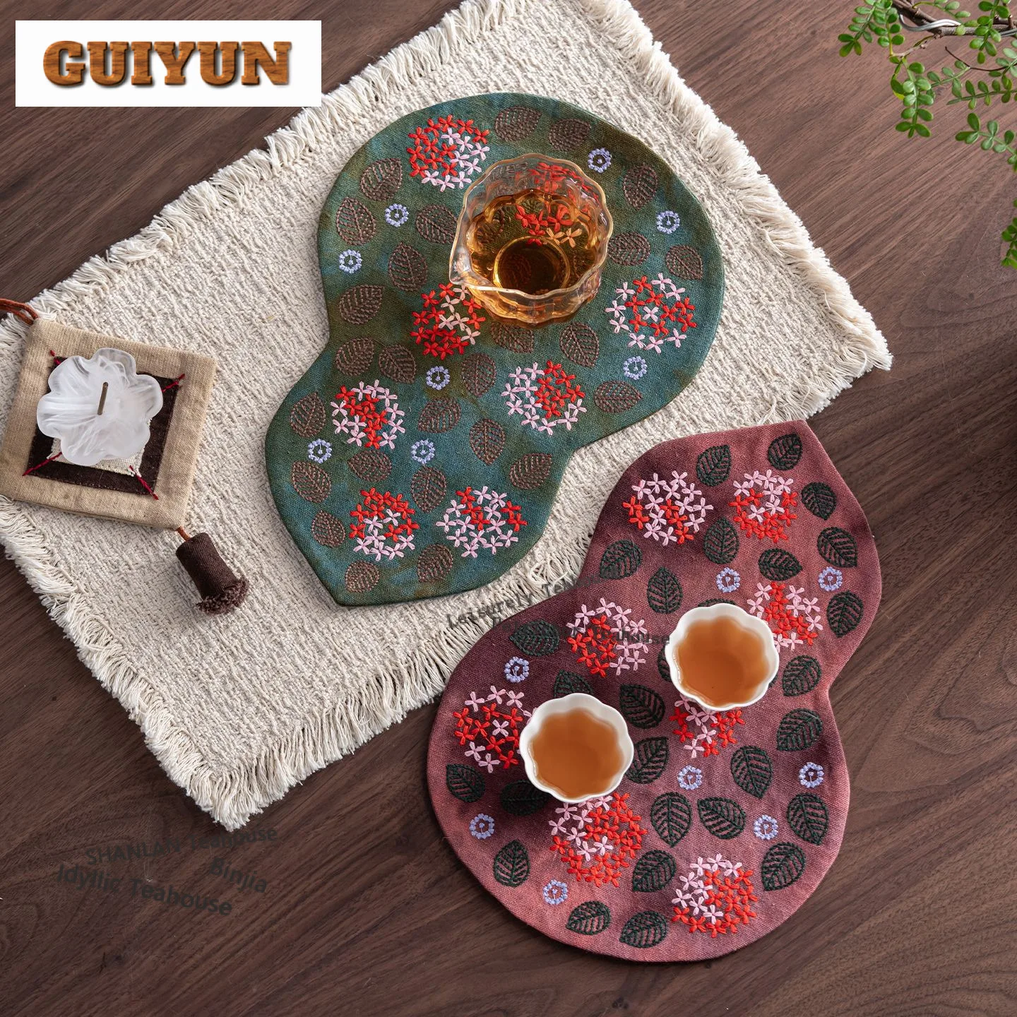Brokat Pfingstrose Stickerei Tee Tischsets Vintage Tee Flagge Zen Tee Tischdecke Getränke Untersetzer Abendessen Tischdecke Matte Teeset Handwerk