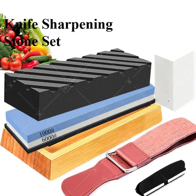 WXCOO Messerschärfstein-Set mit Rutschfester Bambusbasis und 3000/8000 Körnung Doppelseitiger Schleifstein Professioneller Schärfguide