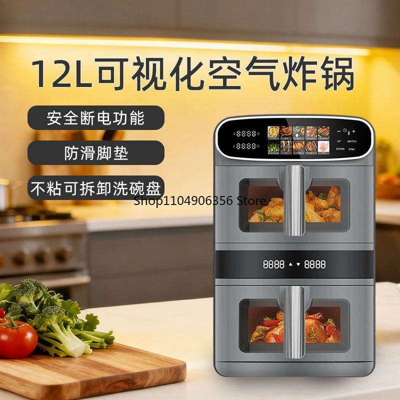 12L Multifunktionaler Großraum-Haushalts-Smart-Airfryer mit Doppelkammer, Touchscreen und Sichtfenster