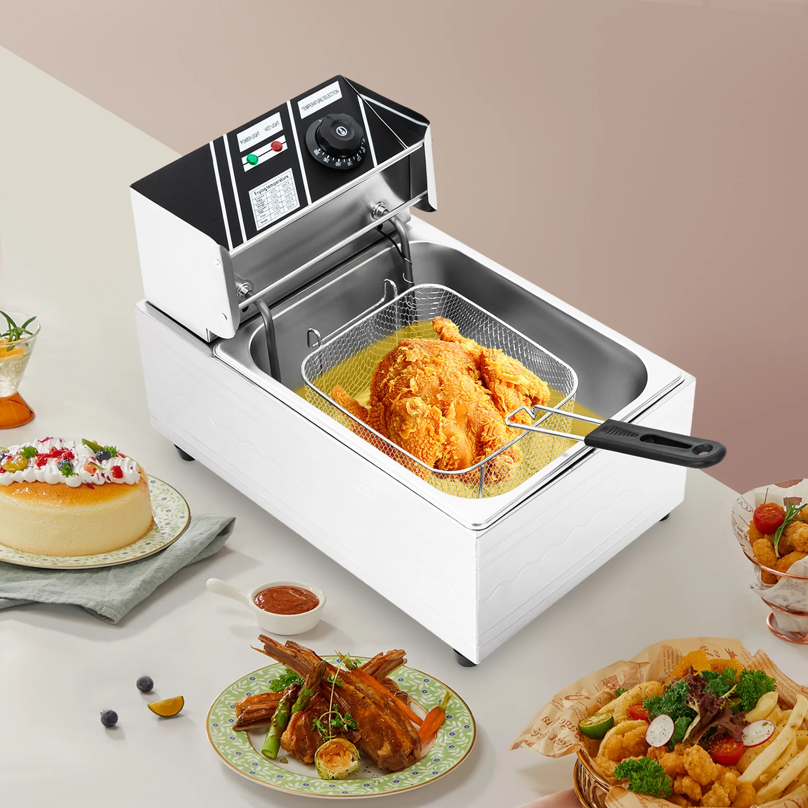6L 2500W Elektrische Fritteuse, Einzylinder-Tischfritteuse aus Edelstahl zum Zubereiten von Pommes, Brathähnchen