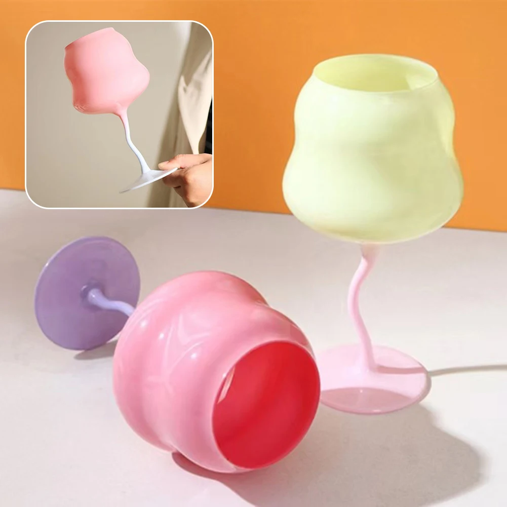 Niedliche, gedrehte Weingläser mit langem Stiel, großes Fassungsvermögen, farbige Glaswaren für Küche, Restaurant, Party, Heimdekoration