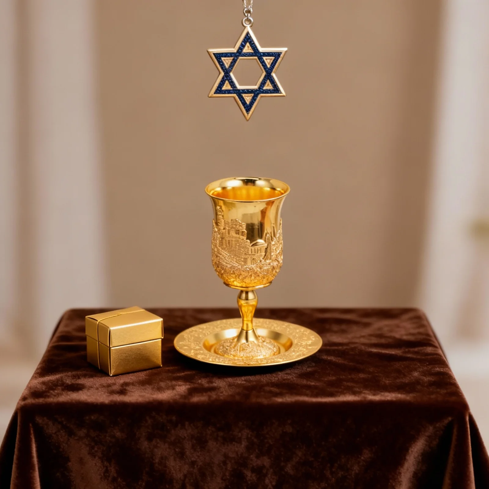 1Set Weinbecher-Set, elegant, geschnitzt, Zinklegierung, Kiddush-Becher für Shabbos Pessach, Urlaub, Festival, Feier, Judaica, Geschenkoption