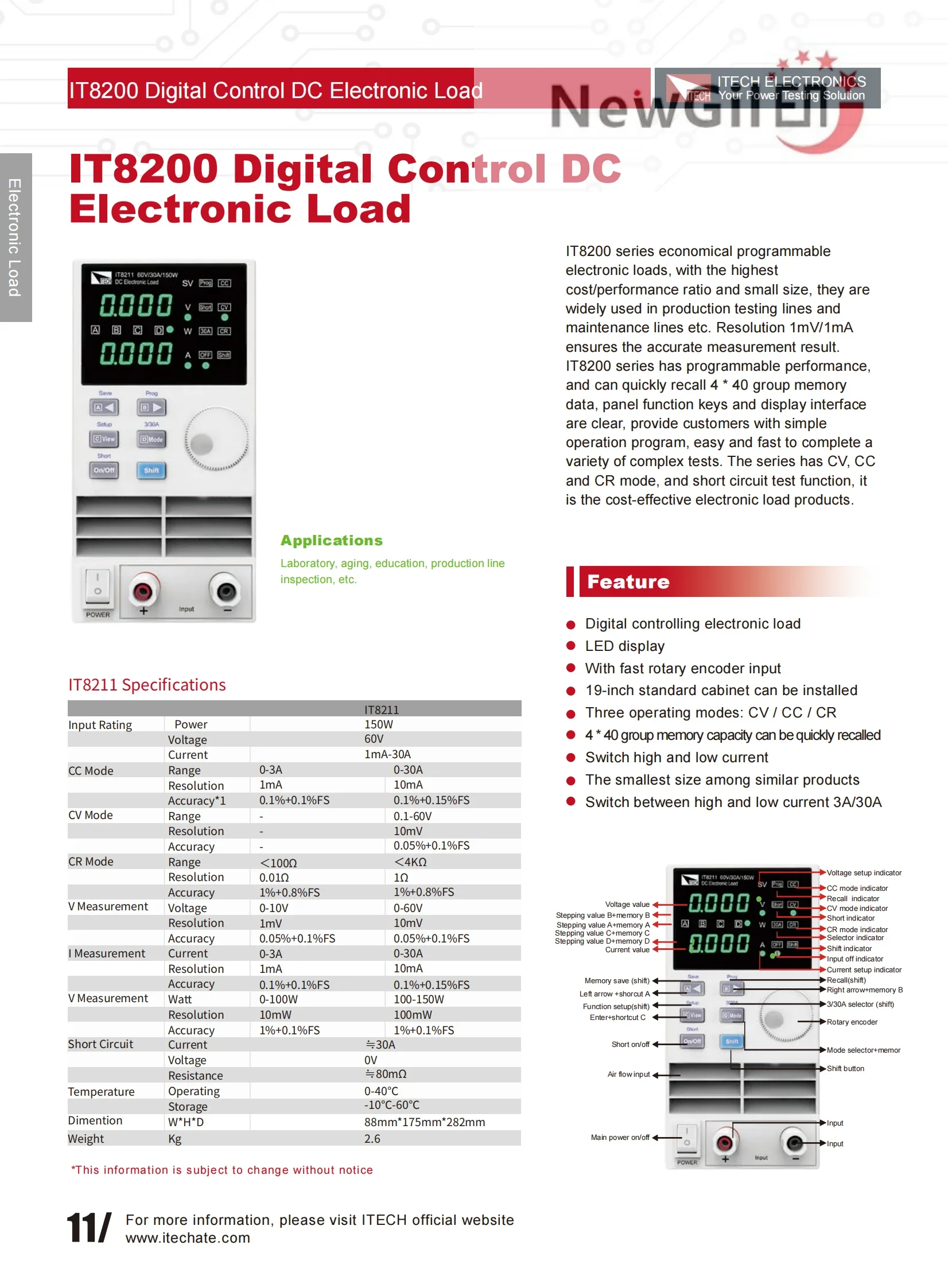 ITECH IT8211 150V 30A 150W Digitale Steuerung DC Elektronische Last