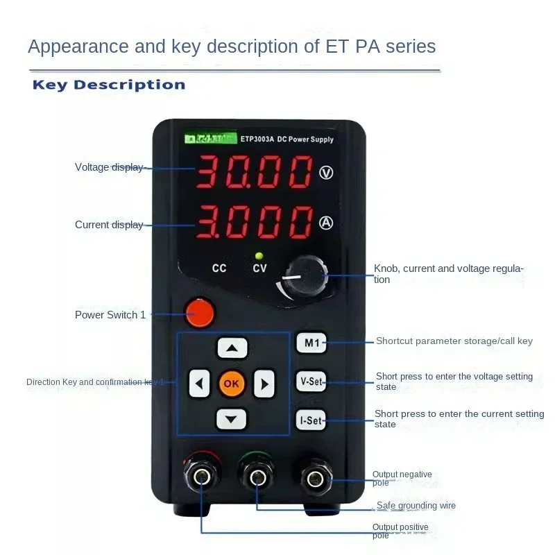 ETP3000A Einkanaliges DC-stabilisiertes Netzteil, hochpräzise Encoder-Einstellung, reparierbare Speicherfernbedienung