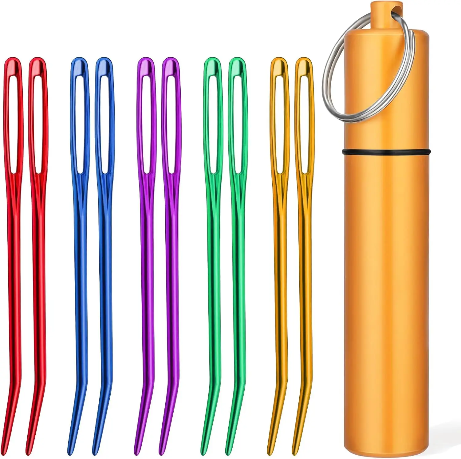 10 Stück Garn-Stopf-Wandteppichnadeln mit großem Öhr zum Häkeln mit Aluminium-Aufbewahrung, Stricken, Häkelzubehör