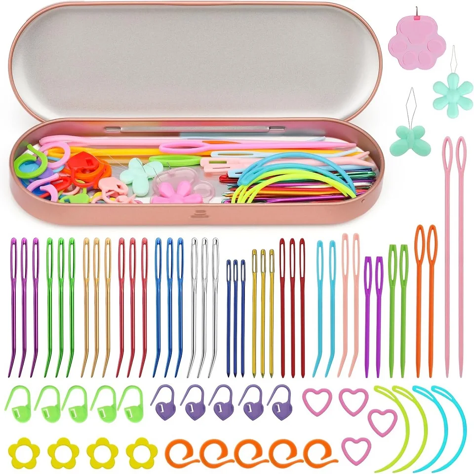 15/48/59/70 stücke Stricken Garn Nadeln Set Stopfen Big Eye Stumpfe Nadeln Kit Gebogene Tapisserie Nähen Weben Nadel für Häkeln